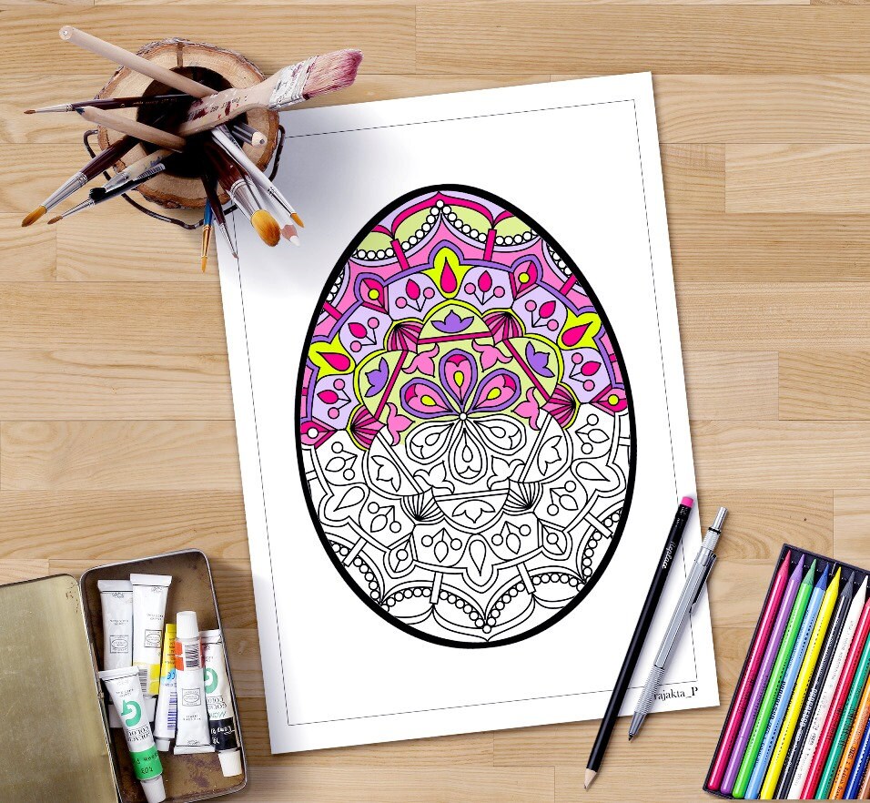 Paasei Mandala Kleurplaat Etsy